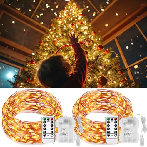 Lezonic [2 Pack] Fairy Lights, 120LEDs 13M 8 Modes String Lights Battery Operated, Indoor/Outdoor with Remote Timer for Bedroom, Party, Wedding, Christmas Decorations(Warm White)