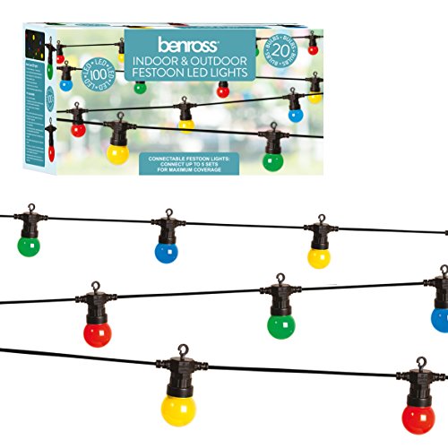 Benross 73390 20 Retro Style LED Festoon String Lights Connectable Indoor Outdoor Multi-Coloured 5m
