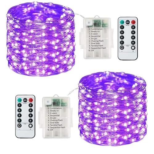 Lezonic 2 Pack Battery Fairy Lights,40Ft 12M 120LED Fairy Lights Battery Operated,8 Lighting Modes Waterproof Decorative String Lights for Indoor/Outdoor Bedroom Wedding Party Christmas Tree (Purple)