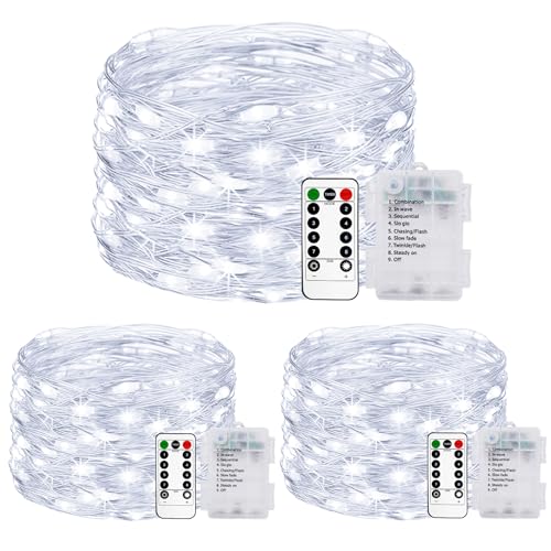 litogo Battery Fairy Lights with Timer, [3 Packs/5M/50 LED] Copper Wire Micro LED String Lights Indoor, Cool White Hanging Twinkle Lights for Bedroom Christmas Party Wedding DIY Decoration