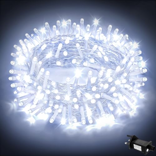 SHATCHI 500 LEDs Fairy String Lights Cool White Indoor/Outdoor Christmas Tree/Home/Party/Wedding/Garden Decorations Green Cable 8 Modes Mains Powered Memory Auto Timer