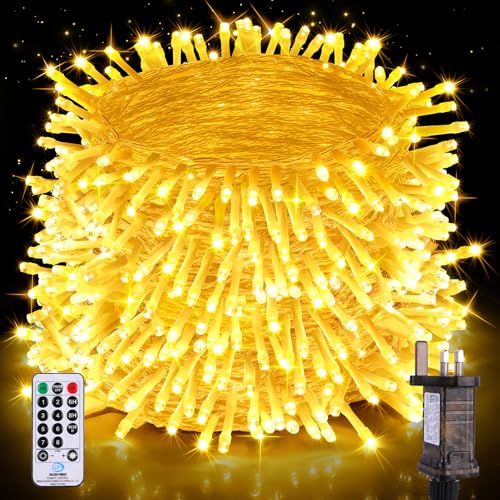 SHATCHI 1000 LEDs Fairy String Lights Warm White Indoor/Outdoor Christmas Tree/Home/Party/Wedding/Garden Decorations Green Cable 8 Modes Mains Powered Memory Auto Timer