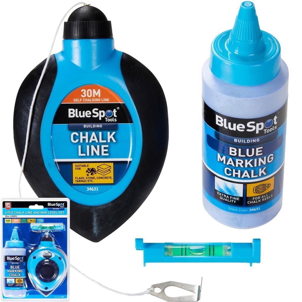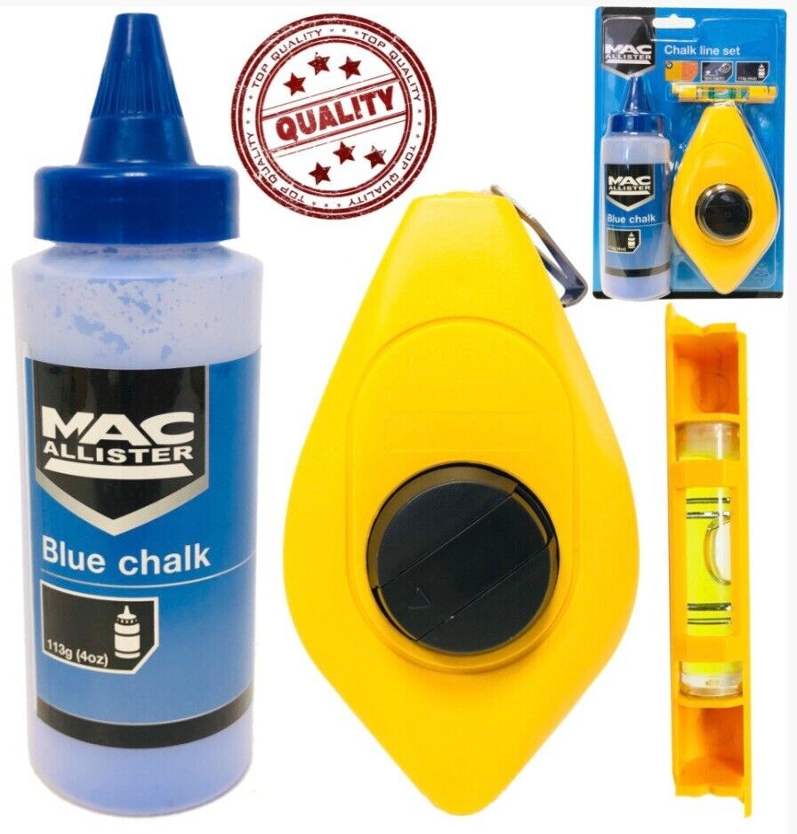 Chalk Line 30m String Kit Reel Builders Spirit Level Blue 50g Chalkline Set