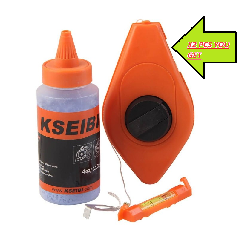 Chalk Line 15m String Kit Reel Builders Spirit Level Blue Chalkline Set 50ft
