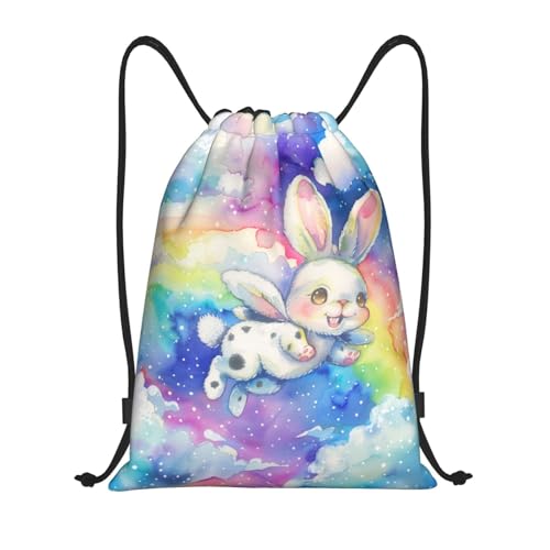 Cute Rabbit Print Women Men String Backpack Durable Swimming Bags Foldable Pe Bag For Holidays Travel Gym Hiking