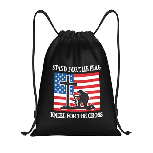 Stand For The Flag Kneel For The Cross Women Men String Backpack Large Swimming Bags Waterproof Pe Bag For Holidays Yoga Hiking Swim