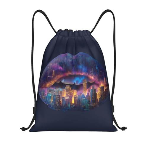 Lips Purple Blue Print Women Men String Backpack Lightweight Drawstring Bag Waterproof Gym Sack For Hiking Swim Climbing Football
