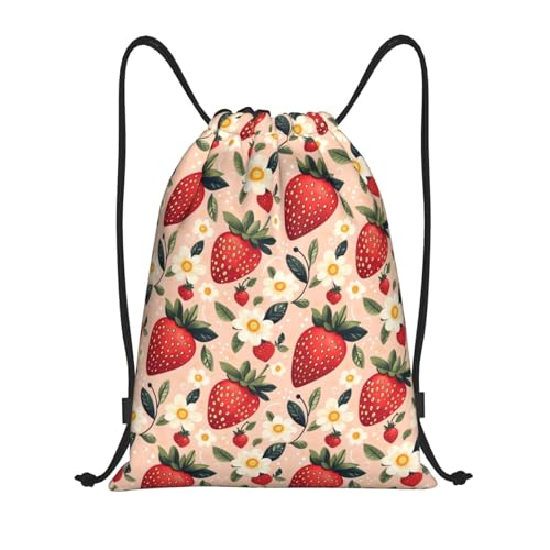 Strawberry Elegant Flowers Print Women Men String Backpack Adjustable Drawstring Bag Large Drawstring Backpack For Climbing Gym Holidays Swim