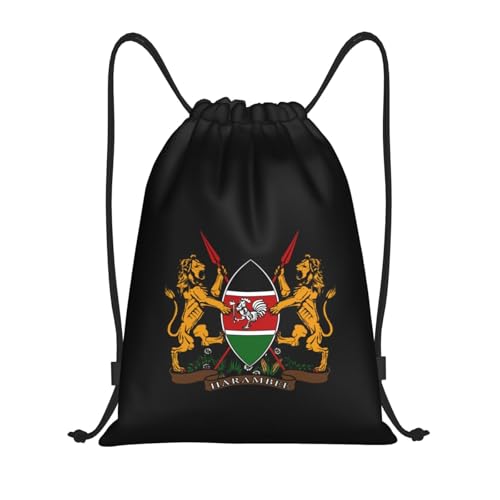 Coat Of Arms Of Kenya Women Men String Backpack Waterproof Drawstring Bag Lightweight Drawstring Backpack For Hiking Picnic Holidays Sports