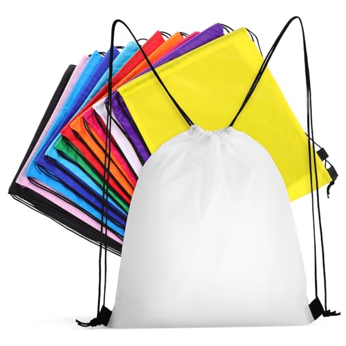 TOYANDONA 12 Pcs Drawstring Bags Multipack, 35×40cm Polyester Dry Bags for Gym, Swim, Sports, Travel – Lightweight Colorful Draw String Pouches for Men, Women, Boys and Girls