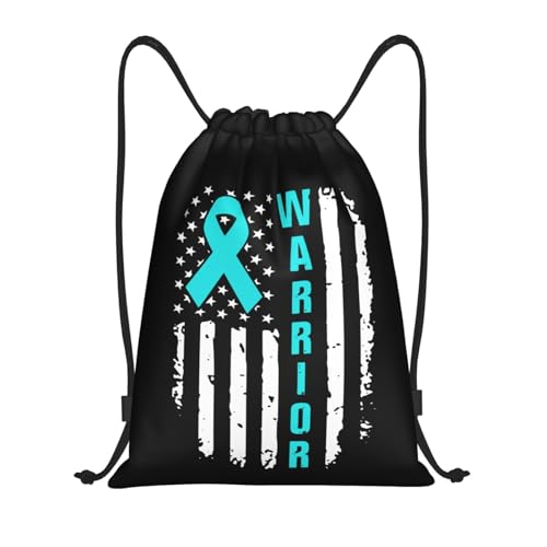 Ovarian Cancer Awareness American Flag Survivor Women Men String Backpack Lightweight Swimming Bags Adjustable Pe Bag For Beach Football Travel Holidays