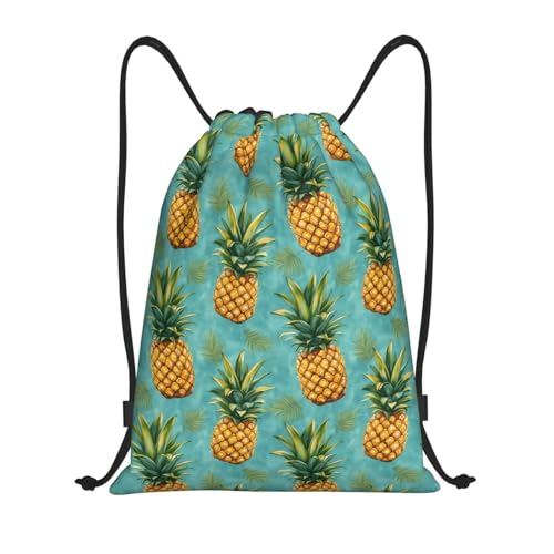 Tropical Cartoon Pineapple Print Women Men String Backpack Foldable Gym Sack Waterproof Pe Bag For Hiking Beach Climbing Holidays