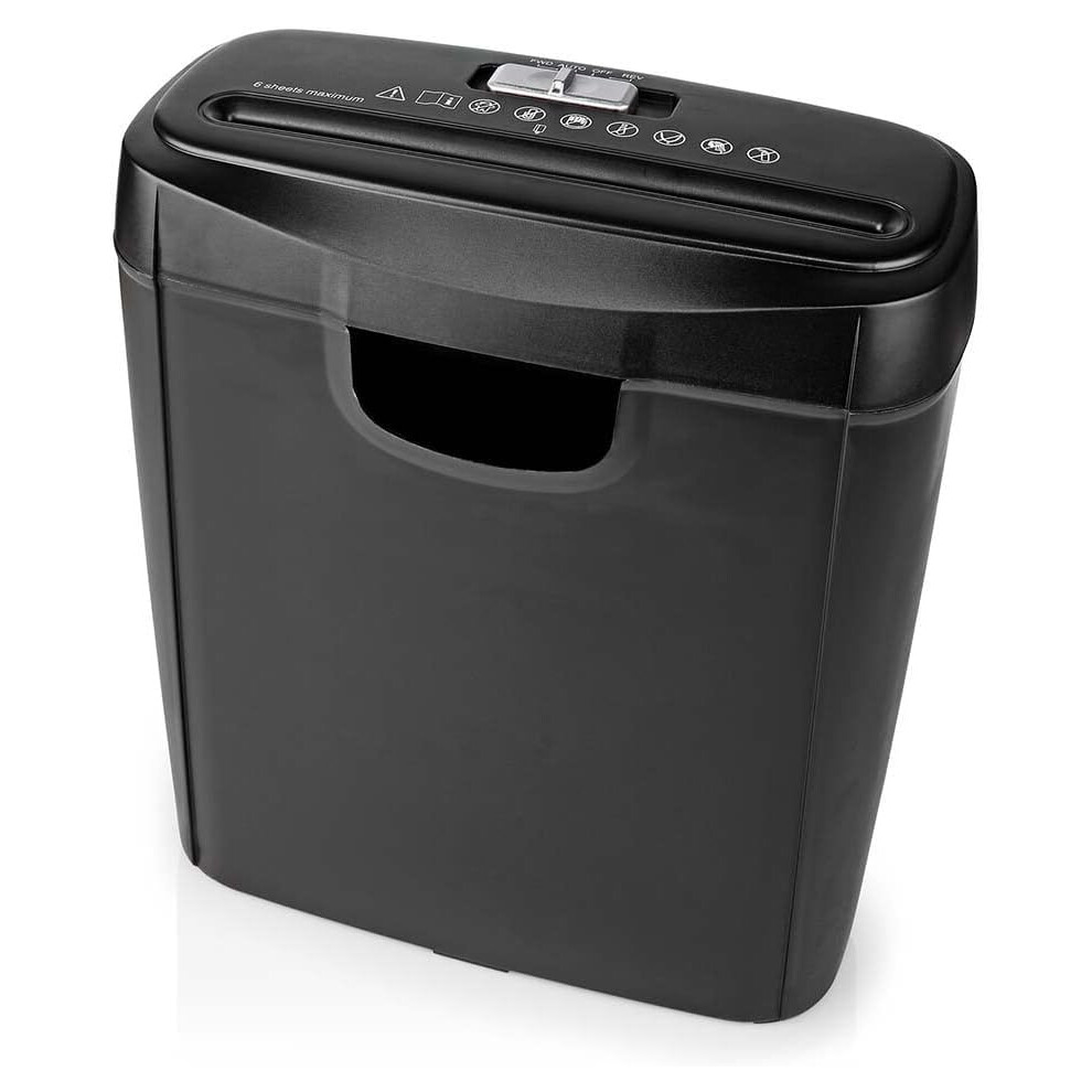 Nedis 6 Sheet Strip Cut Paper Shredder, DIN P-2 Security, Compact Shredder for Home & Small Office Use, Shreds Credit Cards, 10L Bin - Black
