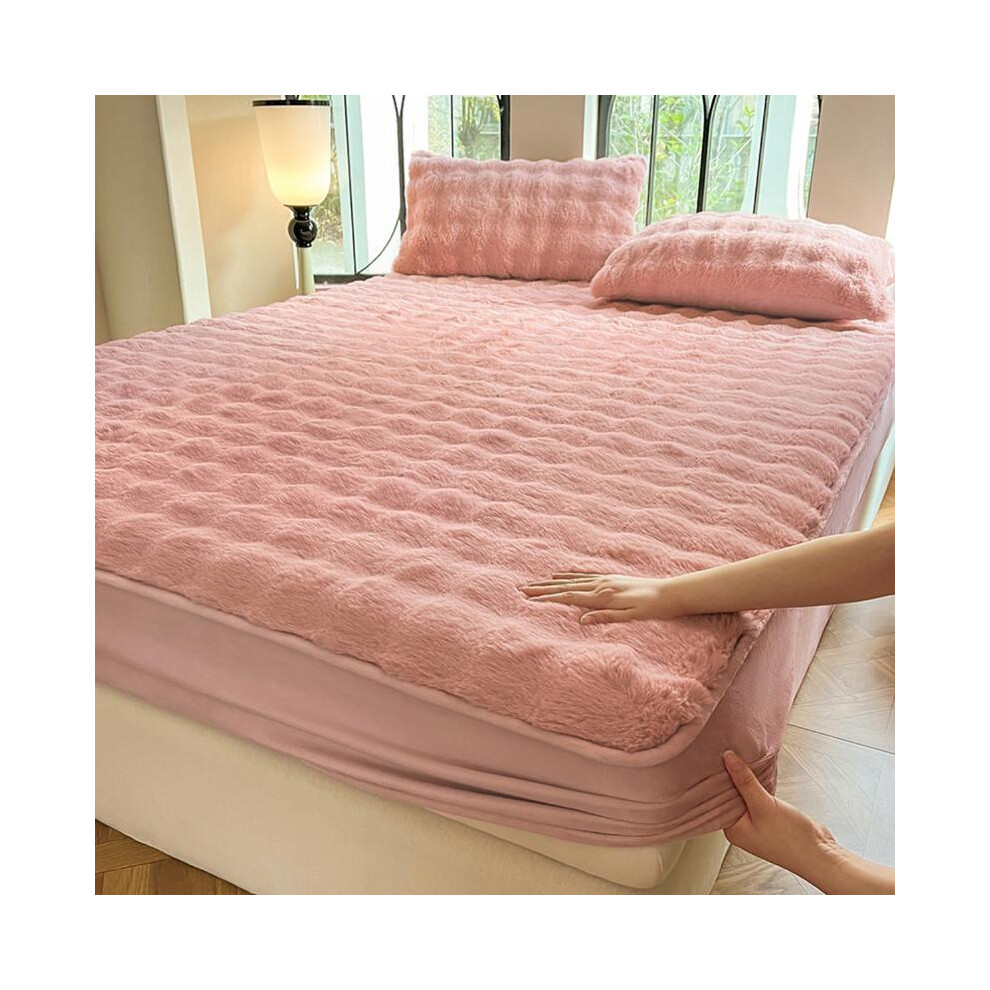 (Pink, 160*200cm) Faux Rabbit Fur Striped Fitted Sheet 3-Piece Set â Luxurious, Soft & Warm Solid Color Bedding, Premium Set (Includes 1 Fitted Shee