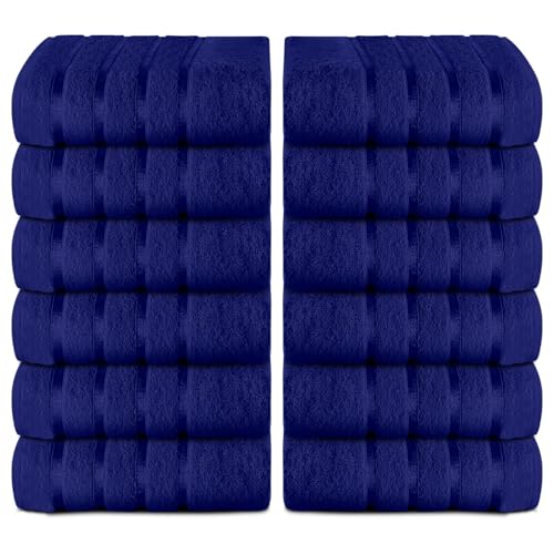 GC GAVENO CAVAILIA Flannel Face Cloth 12 Pack Striped Towels Set | 30 x 30 Cm Face Towels Cotton Washcloths Face Towel For Gym Spa | Soft Feel, Quick Dry & Super Absorbent Fingertip Towels, Royal Blue
