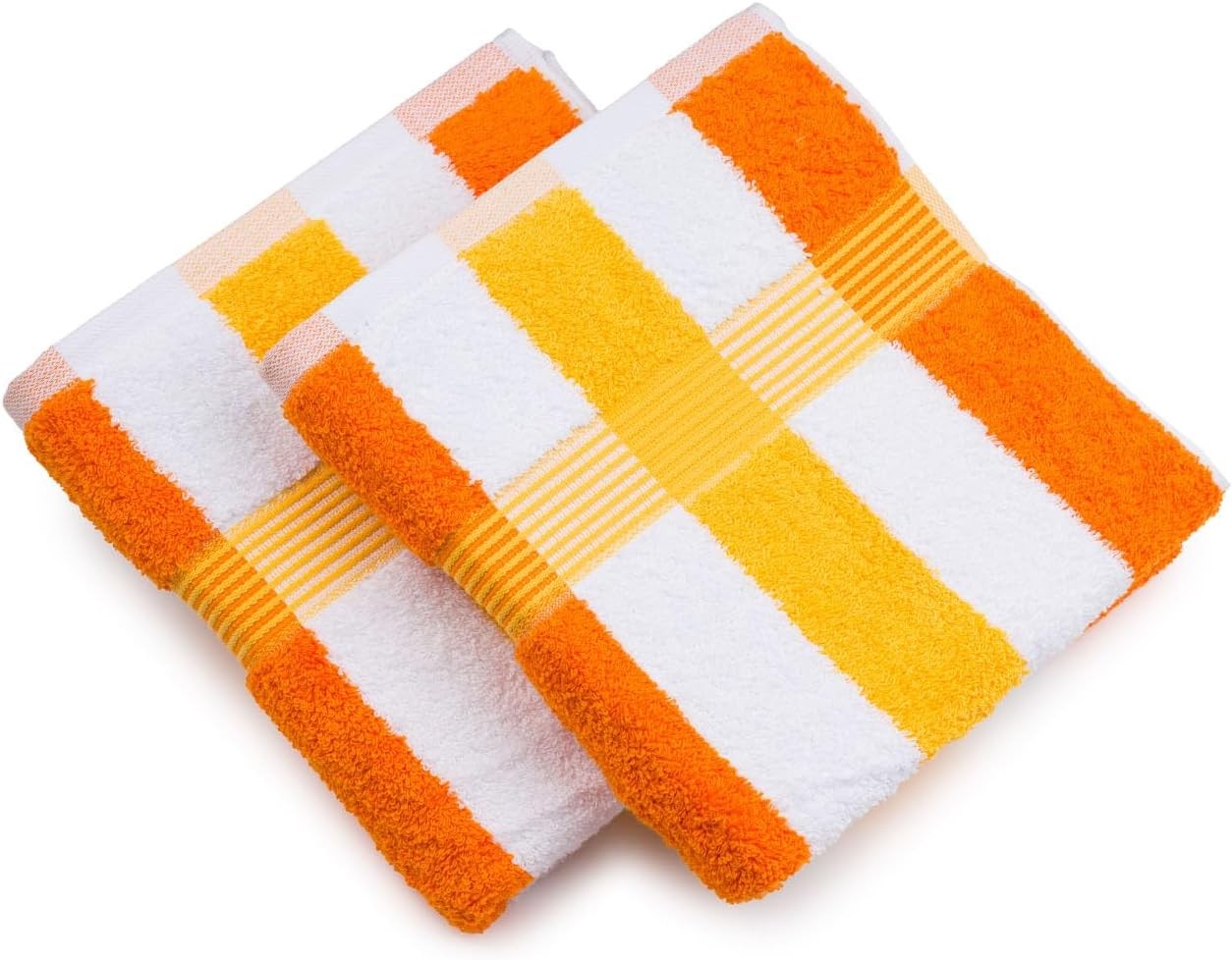 Gözze - New York Striped Hand Towels, Set of 2, Soft and Absorbent, 100% Cotton, 50 x 100 cm - Orange/White/Yellow