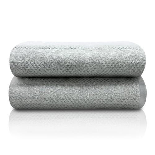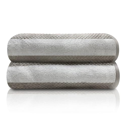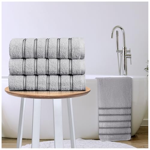 GC GAVENO CAVAILIA Bath Towel Set (70x120 cm) - 100% Ring Spun Cotton Striped Bath Towels 2 Pack - Water Absorbent & Quick Dry Bathroom Towels - Soft Hotel Quality Large Towel -Grey