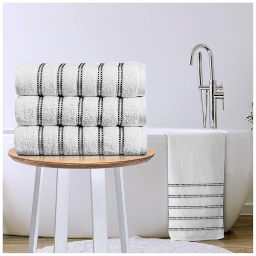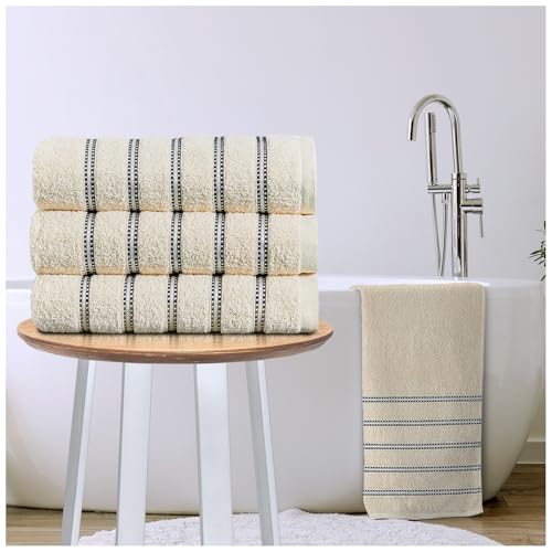 American Linen 3 Pack Luxury Striped Bath Towels – 100% Cotton – Large 27"x54" – Soft, Absorbent, for Bathroom & Shower