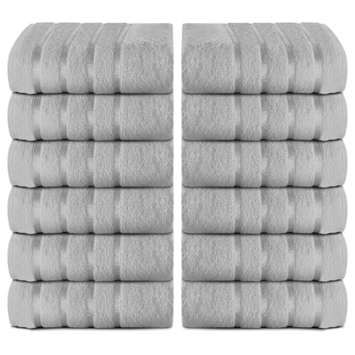 GC GAVENO CAVAILIA Flannel Face Cloth 12 Pack Striped Towels Set | 30 x 30 Cm Face Towels Cotton Washcloths Face Towel For Gym Spa | Soft Feel, Quick Dry & Super Absorbent Fingertip Towels, Silver