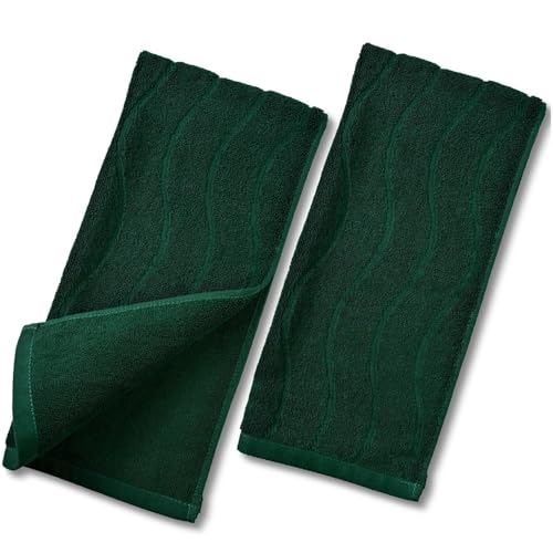 Jacquotha 2-Piece Hand Towels Set in Forest Green, Wavy Striped Jacquard Towels for Bathroom Kitchen Gifts (13x29 Inches, 100% Cotton)