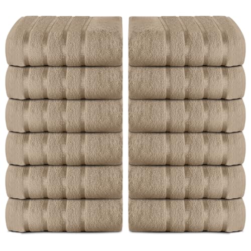 GC GAVENO CAVAILIA Flannel Face Cloth 12 Pack Striped Towels Set | 30 x 30 Cm Face Towels Cotton Washcloths Face Towel For Gym Spa | Soft Feel, Quick Dry & Super Absorbent Fingertip Towels, Natural