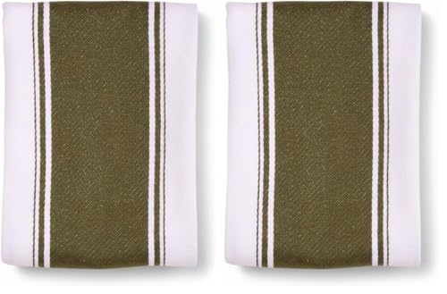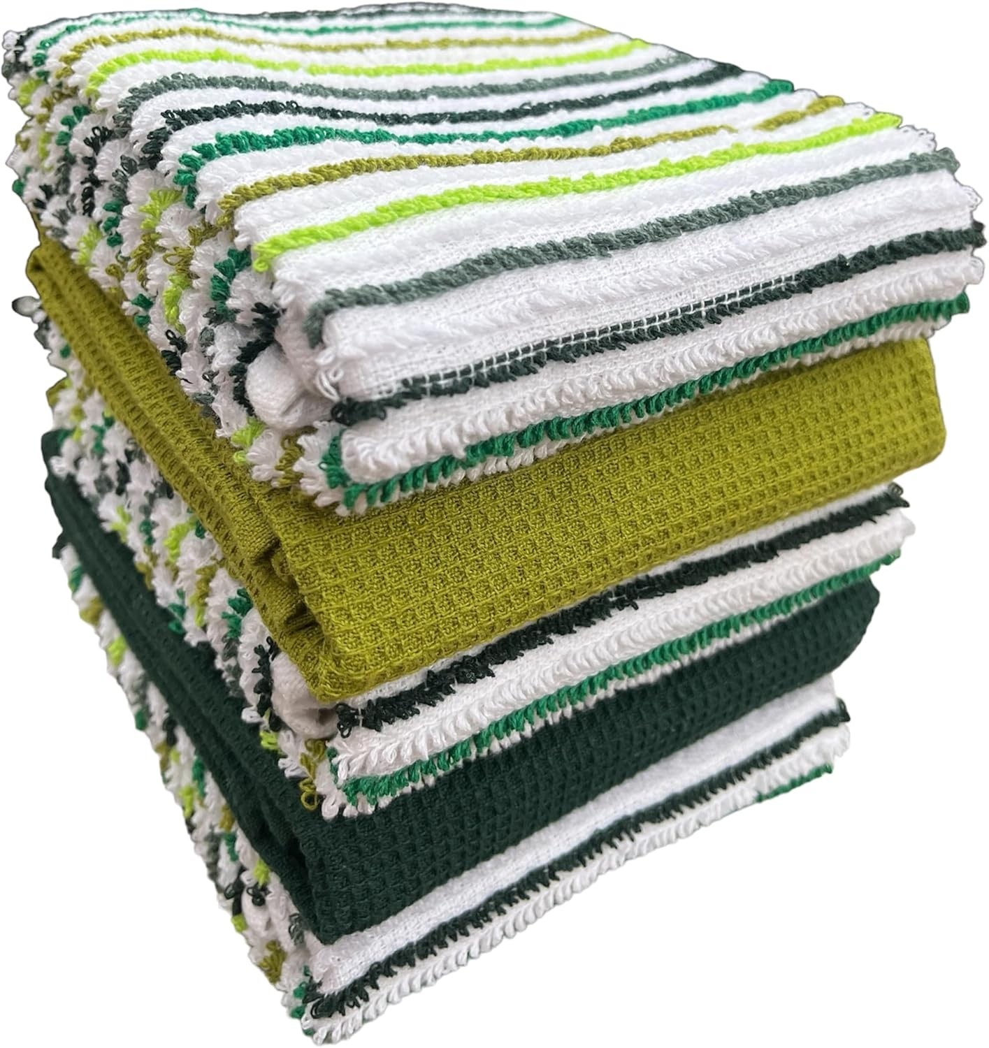 Olivia Rocco 5 Pack Striped Kitchen Tea Towels Cotton Super Absorbent Quick Drying Soft Ribbed Waffle Pot Towel, Green