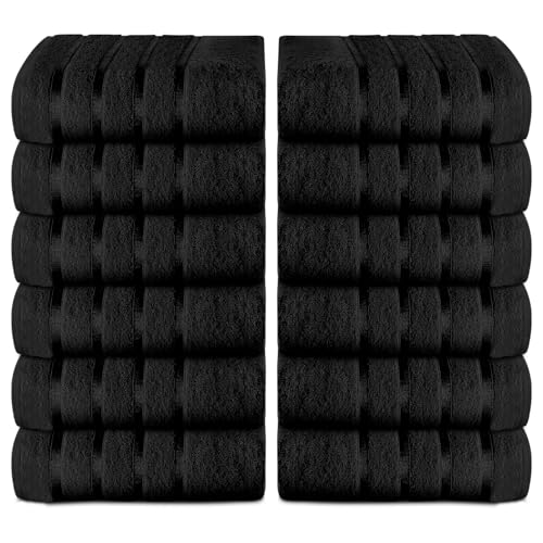 GC GAVENO CAVAILIA Flannel Face Cloth 12 Pack Striped Towels Set | 30 x 30 Cm Face Towels Cotton Washcloths Face Towel For Gym Spa | Soft Feel, Quick Dry & Super Absorbent Fingertip Towels, Black
