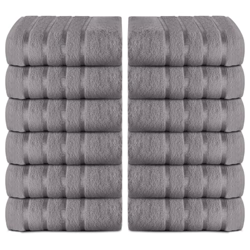GC GAVENO CAVAILIA Flannel Face Cloth 12 Pack Striped Towels Set | 30 x 30 Cm Face Towels Cotton Washcloths Face Towel For Gym Spa | Soft Feel, Quick Dry & Super Absorbent Fingertip Towels, Dark Grey