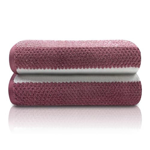 GC GAVENO CAVAILIA Bath Towel Set (70x120 cm) - 100% Ring Spun Cotton Striped Bath Towels 2 Pack - Water Absorbent & Quick Dry Bathroom Towels - Soft Hotel Quality Large Towel -Dark Pink