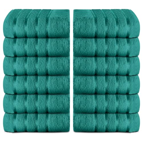 GC GAVENO CAVAILIA Flannel Face Cloth 12 Pack Striped Towels Set | 30 x 30 Cm Face Towels Cotton Washcloths Face Towel For Gym Spa | Soft Feel, Quick Dry & Super Absorbent Fingertip Towels, Teal