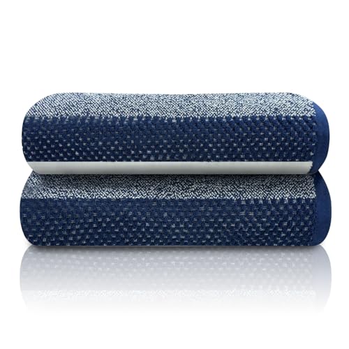 GC GAVENO CAVAILIA Bath Towel Set (70x120 cm) - 100% Ring Spun Cotton Striped Bath Towels 2 Pack - Water Absorbent & Quick Dry Bathroom Towels - Soft Hotel Quality Large Towel -Navy