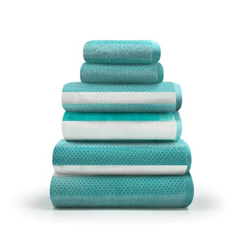 Lavish Home 6-Piece Complete Bath Towel Set – Luxurious Solid and Striped Absorbent Cotton Towels – Machine Washable Bathroom Set (Green)