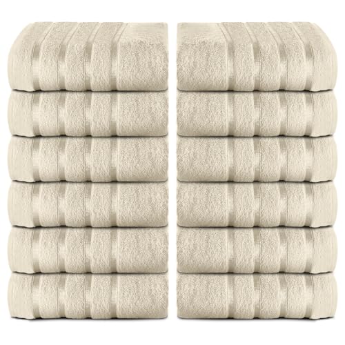 GC GAVENO CAVAILIA Flannel Face Cloth 12 Pack Striped Towels Set | 30 x 30 Cm Face Towels Cotton Washcloths Face Towel For Gym Spa | Soft Feel, Quick Dry & Super Absorbent Fingertip Towels, Cream