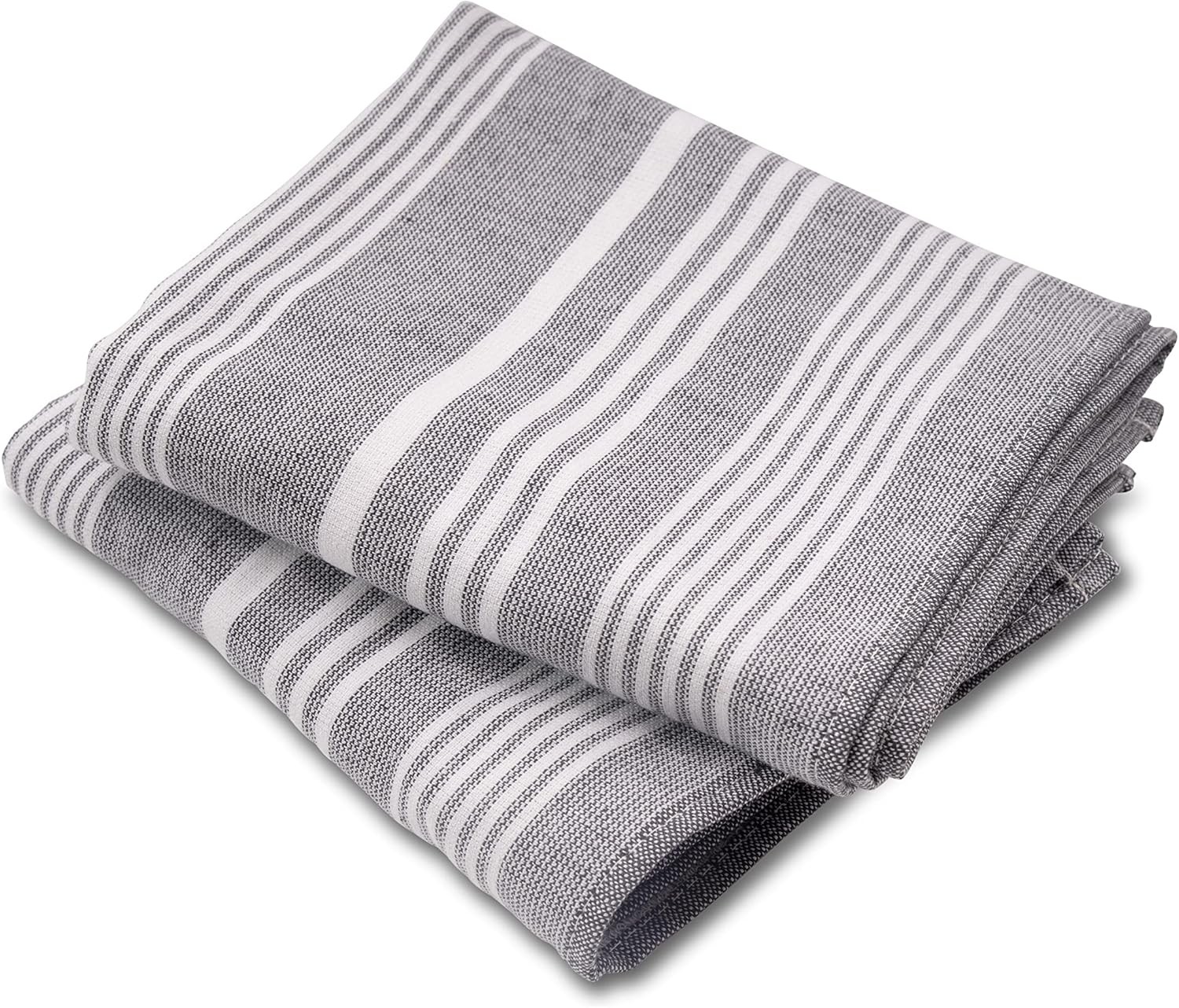 Cuisinart Fouta Striped Grey Tea Towels for Kitchen Set of 2 - Antibacterial, H