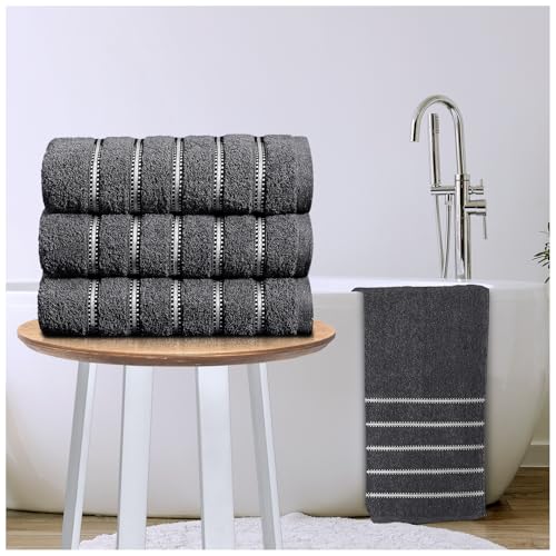 GC GAVENO CAVAILIA Striped Hand Towels 50x90Cm | 3Pack Hand Towels For Bathroom Fast Dry & Highly Absorbent 600 GSM Towel Set | Super Soft, Hotel Quality Cotton Towels Sets For Spa Gym, Charcoal