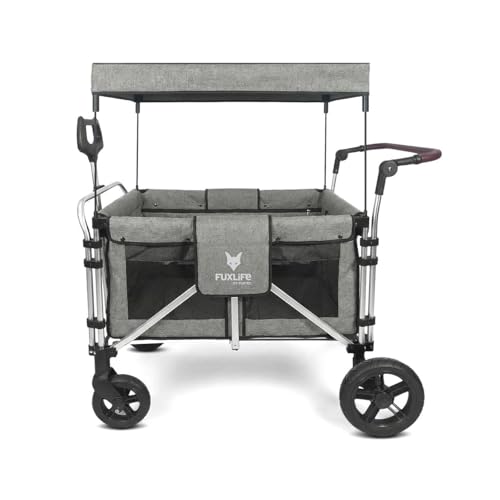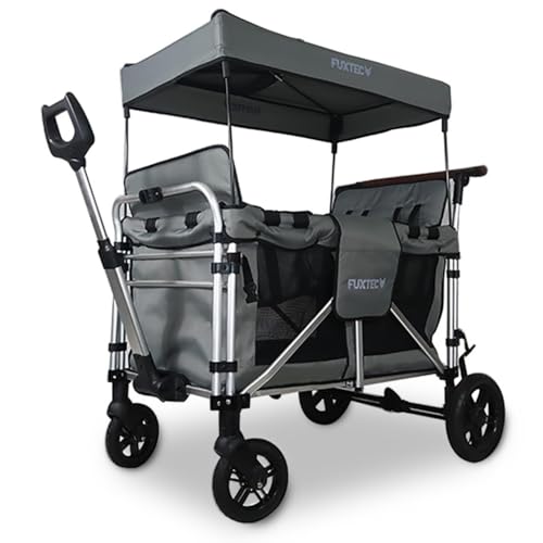 FUXTEC CTL900 Grey Folding Stroller Wagon for Kids to Sit In – 2-Seater Push-Pull Wagon with 5-Point Harness, Adjustable Handle & All-Terrain 4-Wheel Design