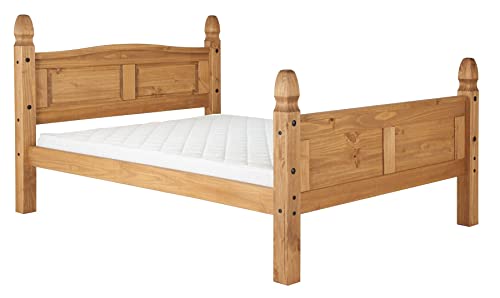 Save On Goods UK Antique Waxed Pine,Mexican,Solid Strong Pine Wood Bed Frame High Foot End, Solid Panel (5ft King Size)