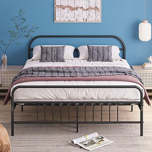 Panana NEW Strong Metal Bed Frame 4ft 4ft6 Double Size Solid Bedstead Base Headboard UK (Black, 4FT)