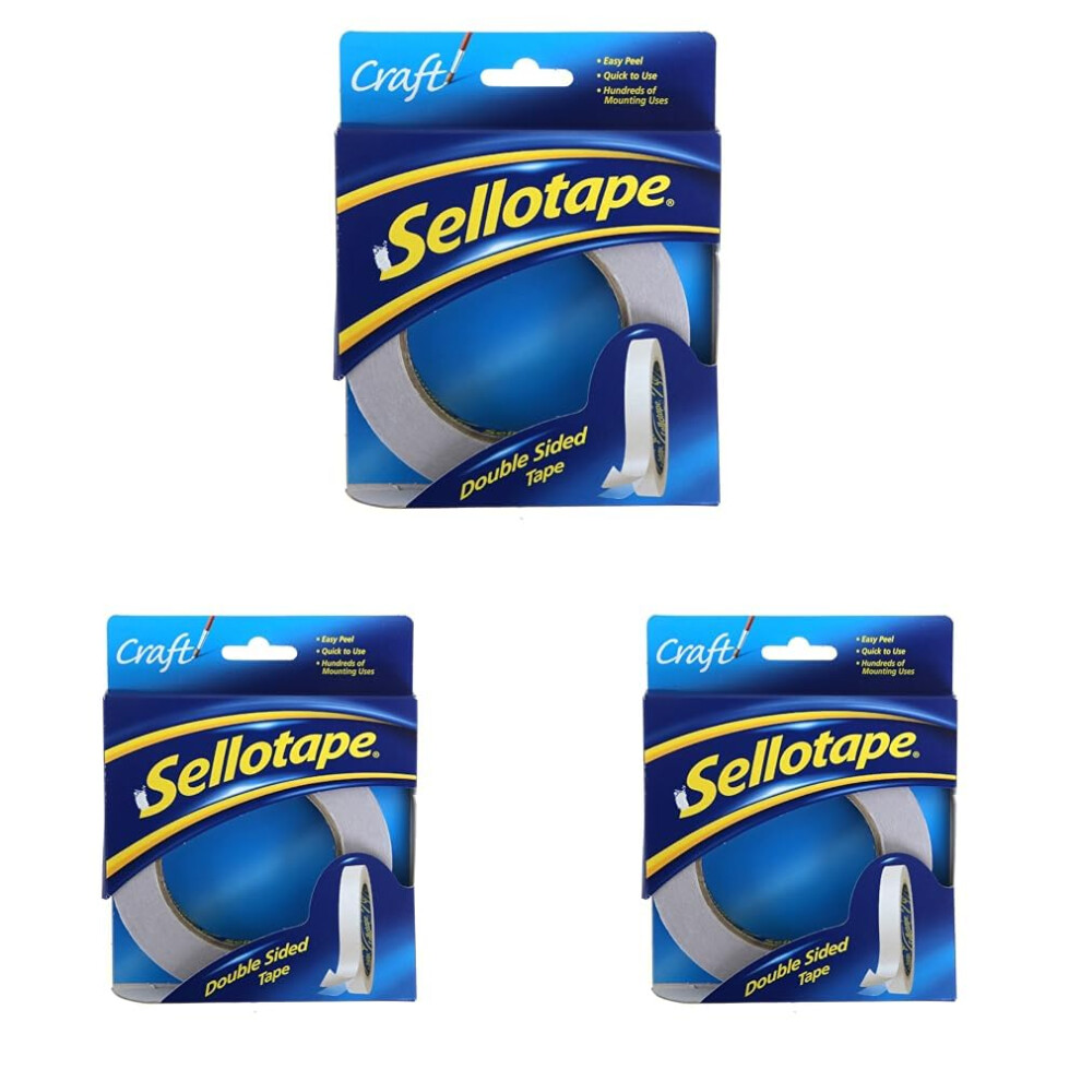 Sellotape Double Sided Tape, Strong Double Sided Tape for Everyday Use, Mounting, Arts & Crafts, Easy to Use Double Sided Sticky Tape with Solid Grip