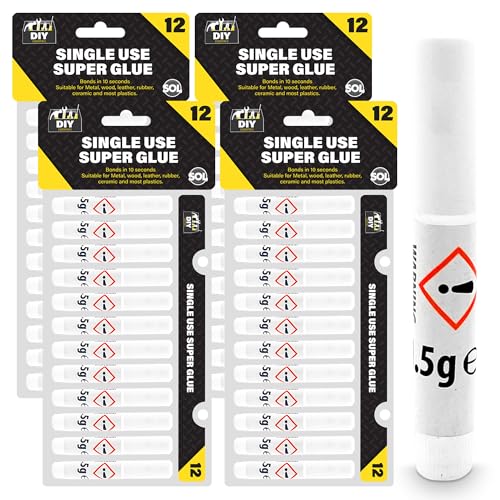 SOL 48pk Single Use Super Glue 1.5g - Instant Multipurpose Superglue for Plastic, Wood & Metal - Strong Adhesive for Quick Repairs & Bonding - All-Purpose Instant Glue Multipack