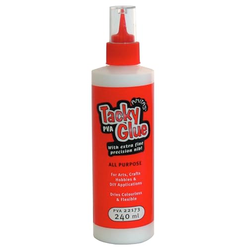 Anita's Tacky Poly Vinyl, PVA Craft Glue, 240ml, Ideal For Paper Crafting, All-Purpose Adhesive With Strong Tack, For Wood, Paper, Card, Leather, Foam, Fabric, Use For Making Slime, Dries Clear