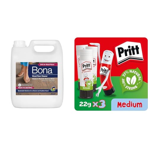 Bona Wood Floor Cleaner Liquid | Wooden Floor Cleaner | Robot Liquid & Pritt Glue Stick, Safe & Child-Friendly Craft Glue for Arts & Crafts Activities, Strong-Hold adhesive