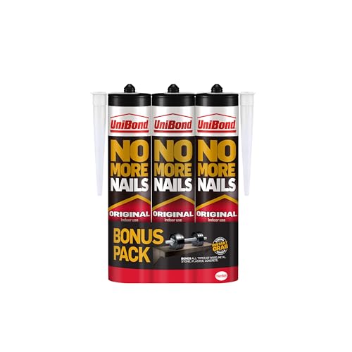 UniBond No More Nails Original, Heavy-Duty Mounting Adhesive, Strong Glue for Wood, Ceramic, Metal etc. & No More Nails Original, Heavy-Duty Mounting Adhesive, Strong Glue for Wood, Ceramic, Metal