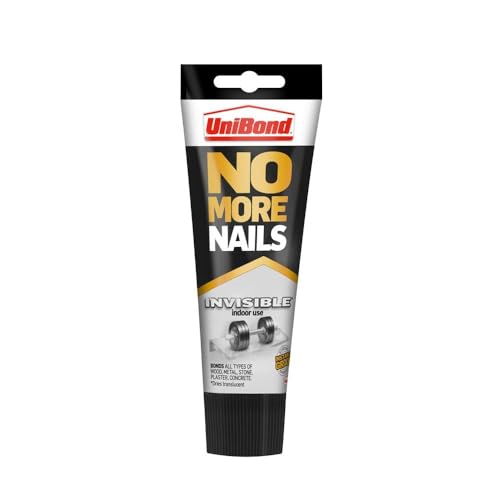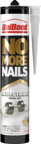 UniBond No More Nails Invisible, Heavy-Duty Clear Glue, Strong glue for Wood, Ceramic, Metal & More, Instant Grab Mounting Adhesive, 1 x 285g Cartridge