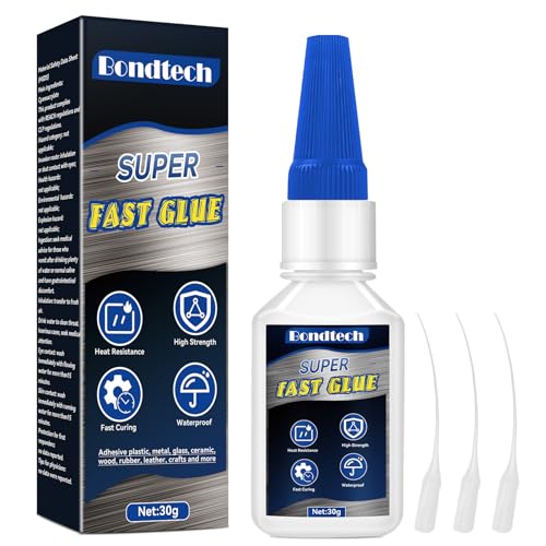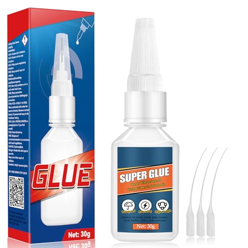 30 g Superglue Instant, Super Glue All Purpose, Strong Glue with Anticlog Cap, for Plastic, Glass, Ceramic, Metal, Wood, DIY, Precise Repair, Clear