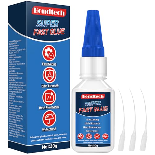 30g Superglue, Super Glue All Purpose for Accurate Repairs, Instant Strong Glue with Anti Clog Cap and Droppers, Superglue for Plastic, Metal, Glass, Wood, Ceramic and DIY (30g)