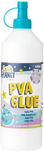 Craft Planet - 0.5 Litre White Strong, Tacky PVA All Purpose Glue For Kids Art, Toddler Craft, School Supplies, Woodwork, Home Projects, DIY, Craft Box Refill, For Paper, Wood, Craft Materials