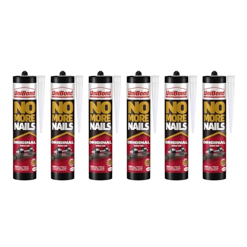 UniBond No More Nails Original, Heavy-Duty Mounting Adhesive, No Nails Strong Glue for Wood, Ceramic, Metal etc, White Instant Grab Adhesive, Pack of 6 (6 x 365g Cartridges)