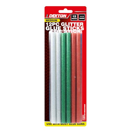 Dekton 11mm x 200mm Glitter Glue Sticks - 12 Pack | Ideal for Arts, Crafts & DIY | Sparkling Glitter Finish | Compatible with Standard Glue Guns | Strong Adhesion for Paper, Fabric, Wood & More