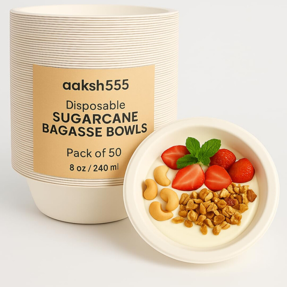 Aaksh 555 | Pack of 50 | Strong Disposable Bowls 8oz/240ml, Ecofriendly [4.5 x 1.77 inches ] Strong Paper Bowls for Hot & Cold Foods, Soup, Desserts,
